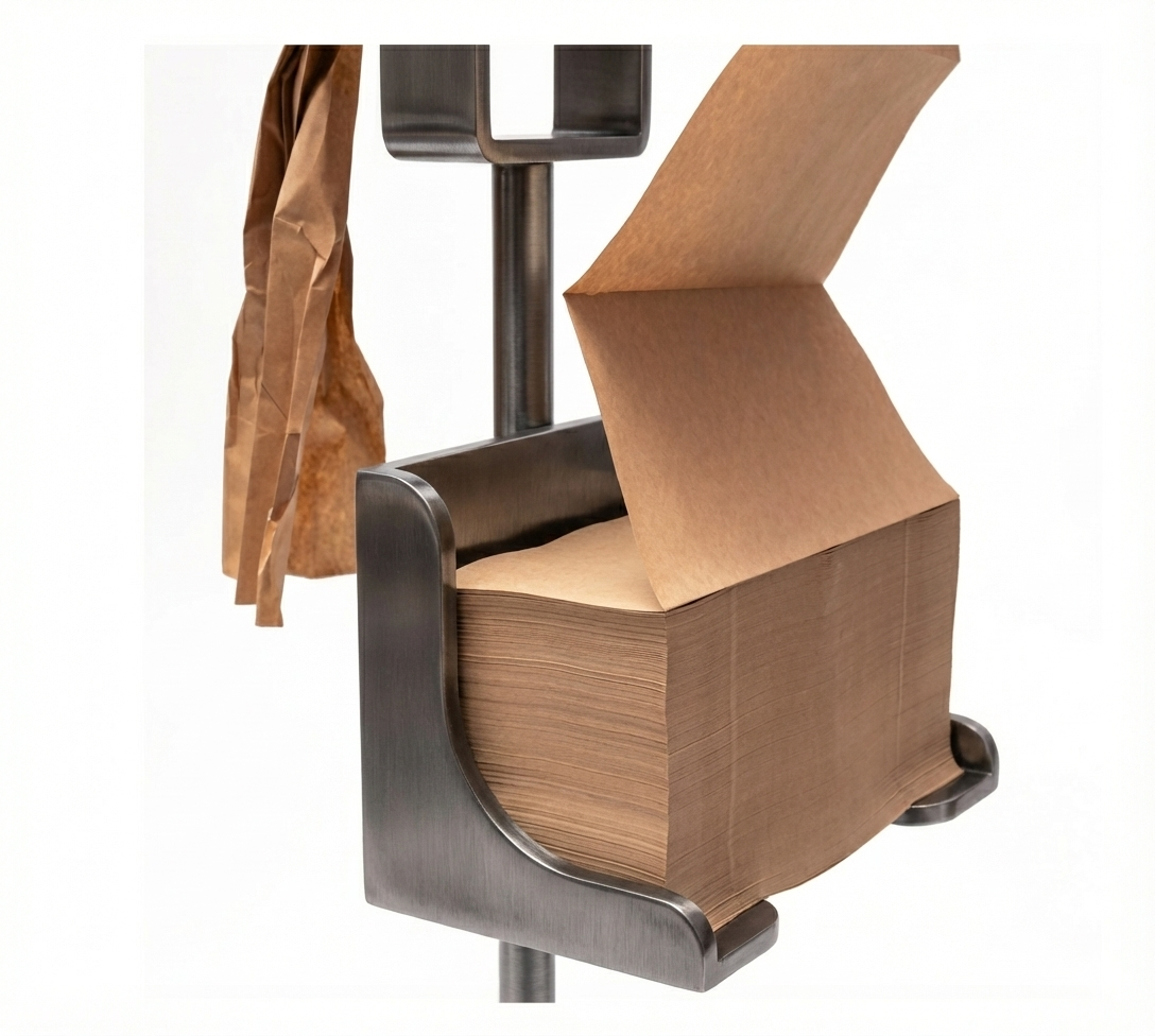 - Sheets are folded into a zig-zag stack for smooth, jam-free dispensing
